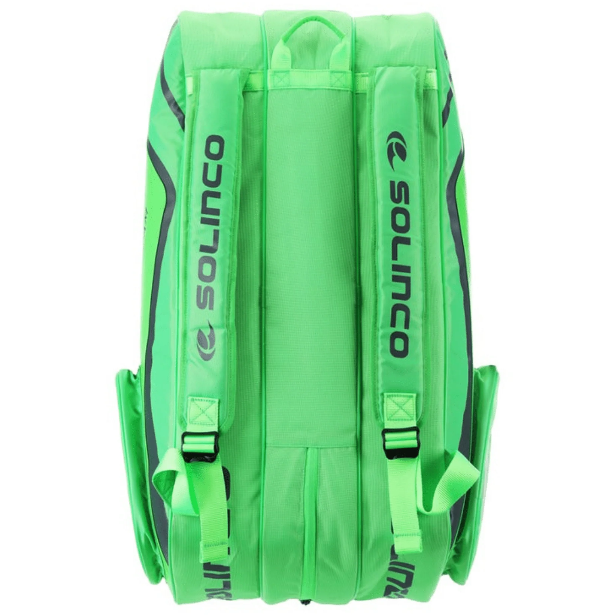 Be bold on the court with the new Solinco 15-Pack Tour Tennis Racket Bag in Neon Green!