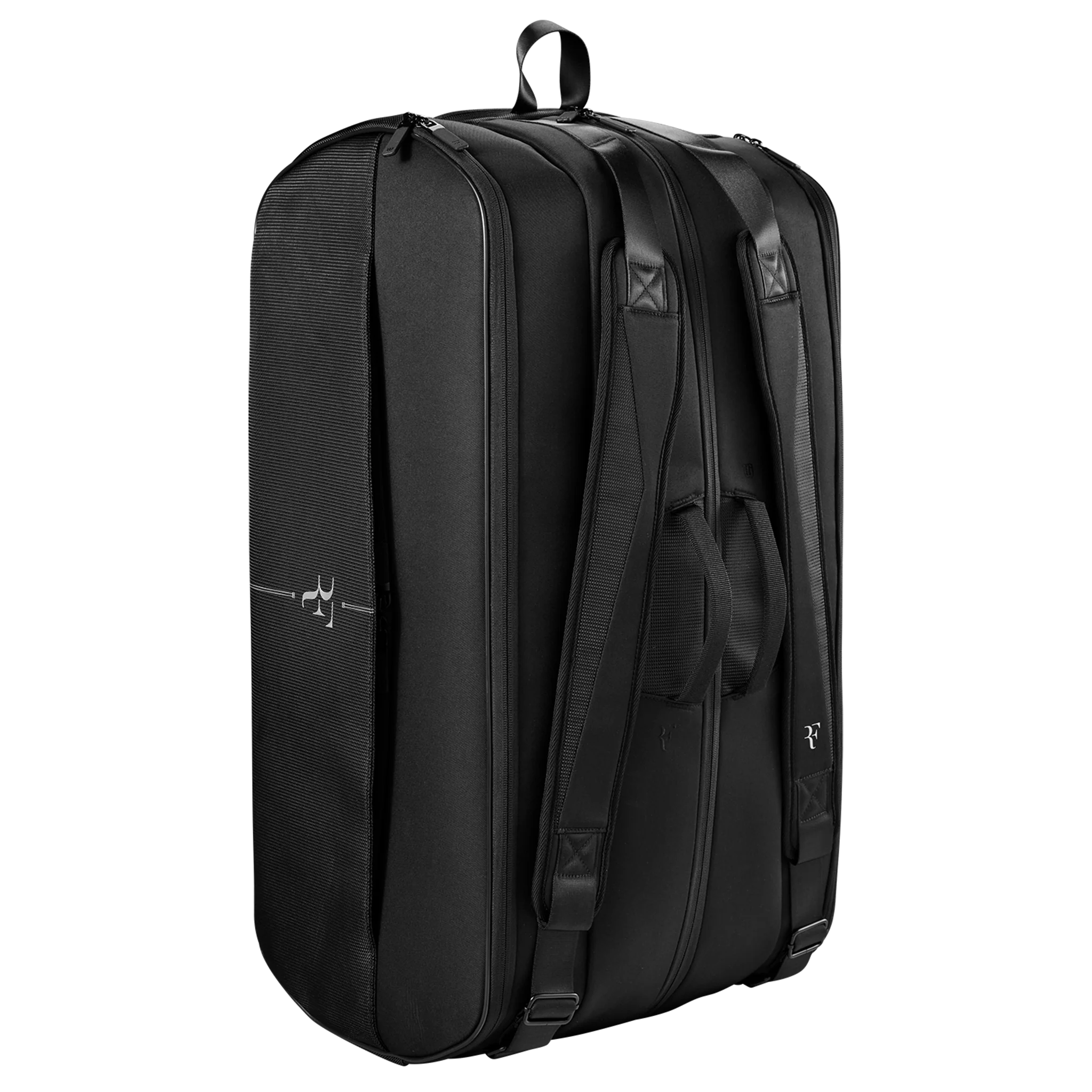 Great gear deserves special treatment. The Wilson RF Tournament Racket Bag is a pro-level bag with a design inspired by the majestic Swiss Alps, a theme that's echoed across Roger Federer's collection. This pinstripe tennis bag displays the RF logo and is detailed with premium RF zipper pulls. It's spacious enough to hold up to 15 rackets and includes two side pockets plus a shoe compartment. A Thermoguard lining in two pockets keeps rackets and string tension protected from extreme temperatures.